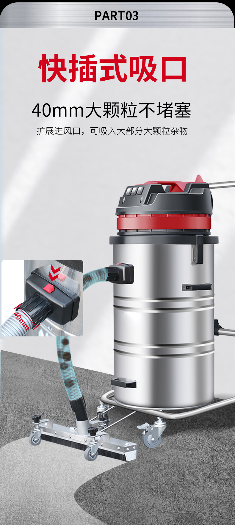 甘南坦洁220V单桶不锈钢工业吸尘器X3系列