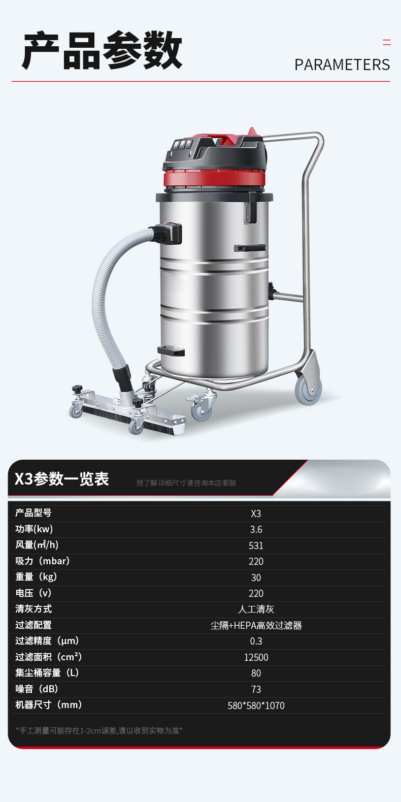 甘南坦洁380V双桶不锈钢工业吸尘器X7系列