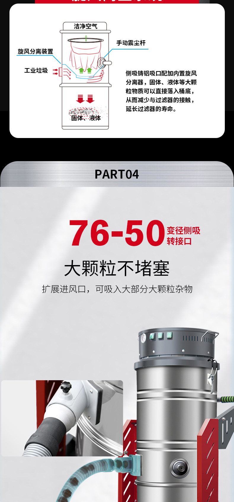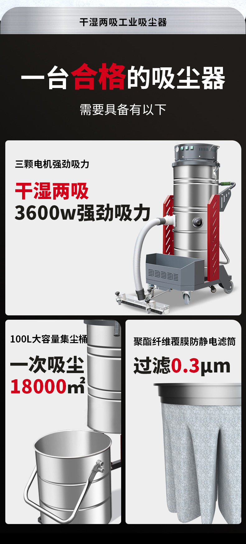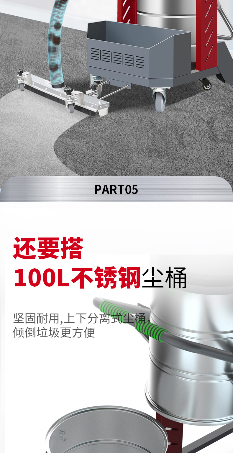 甘南坦洁380V双桶不锈钢工业吸尘器X7系列