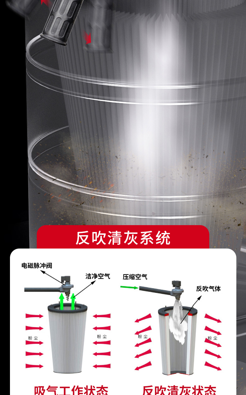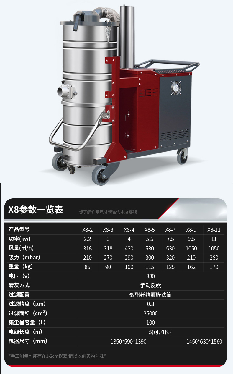 甘南坦洁380V 双桶手动反吹工业吸尘器X8系列