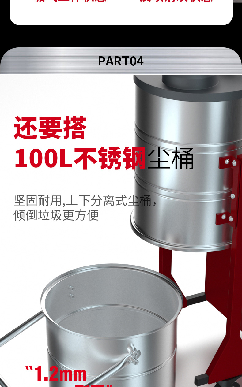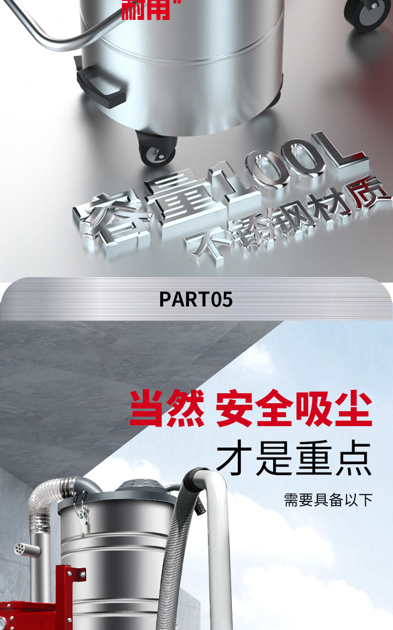 甘南坦洁380V双桶不锈钢工业吸尘器X7系列